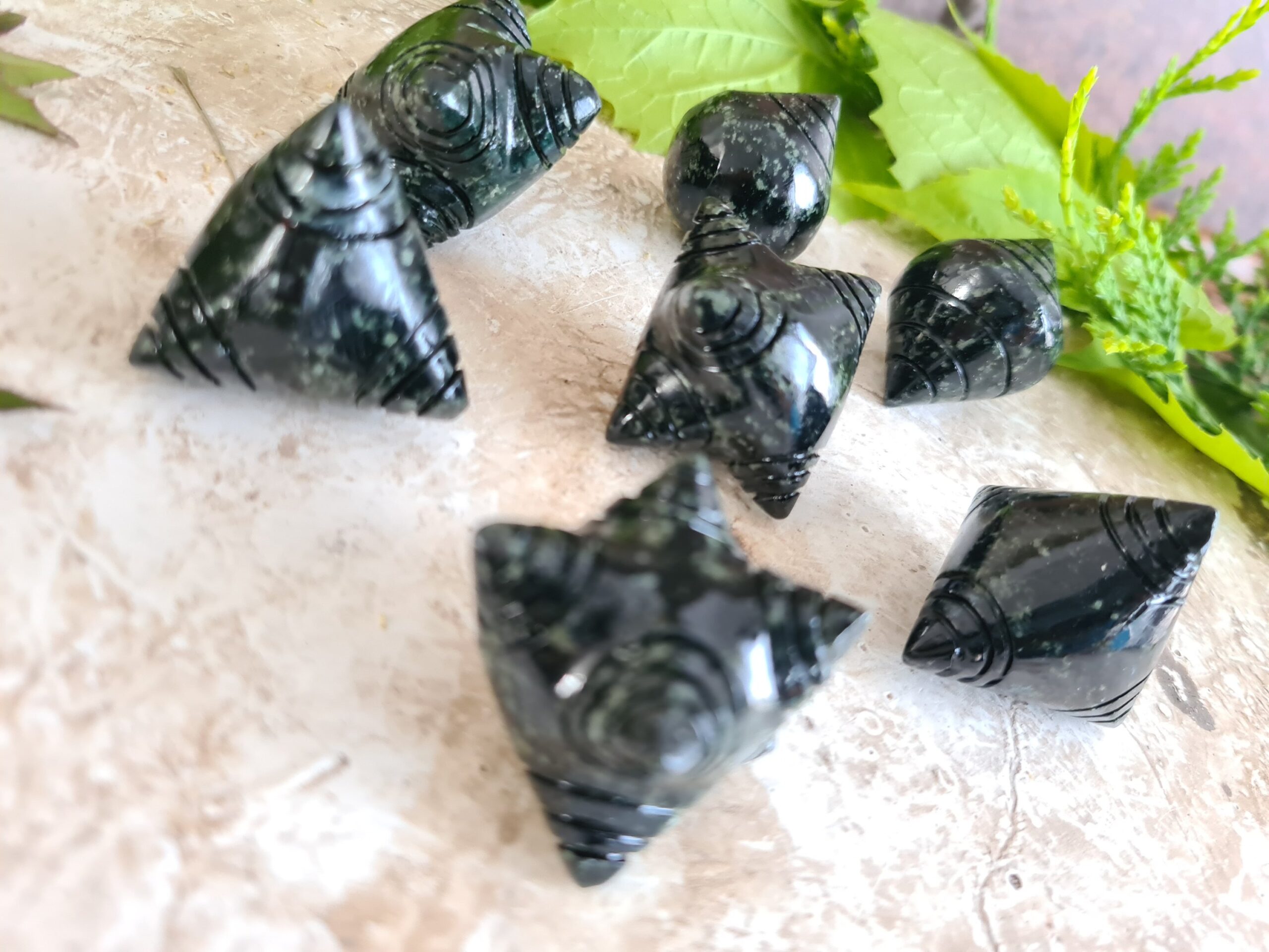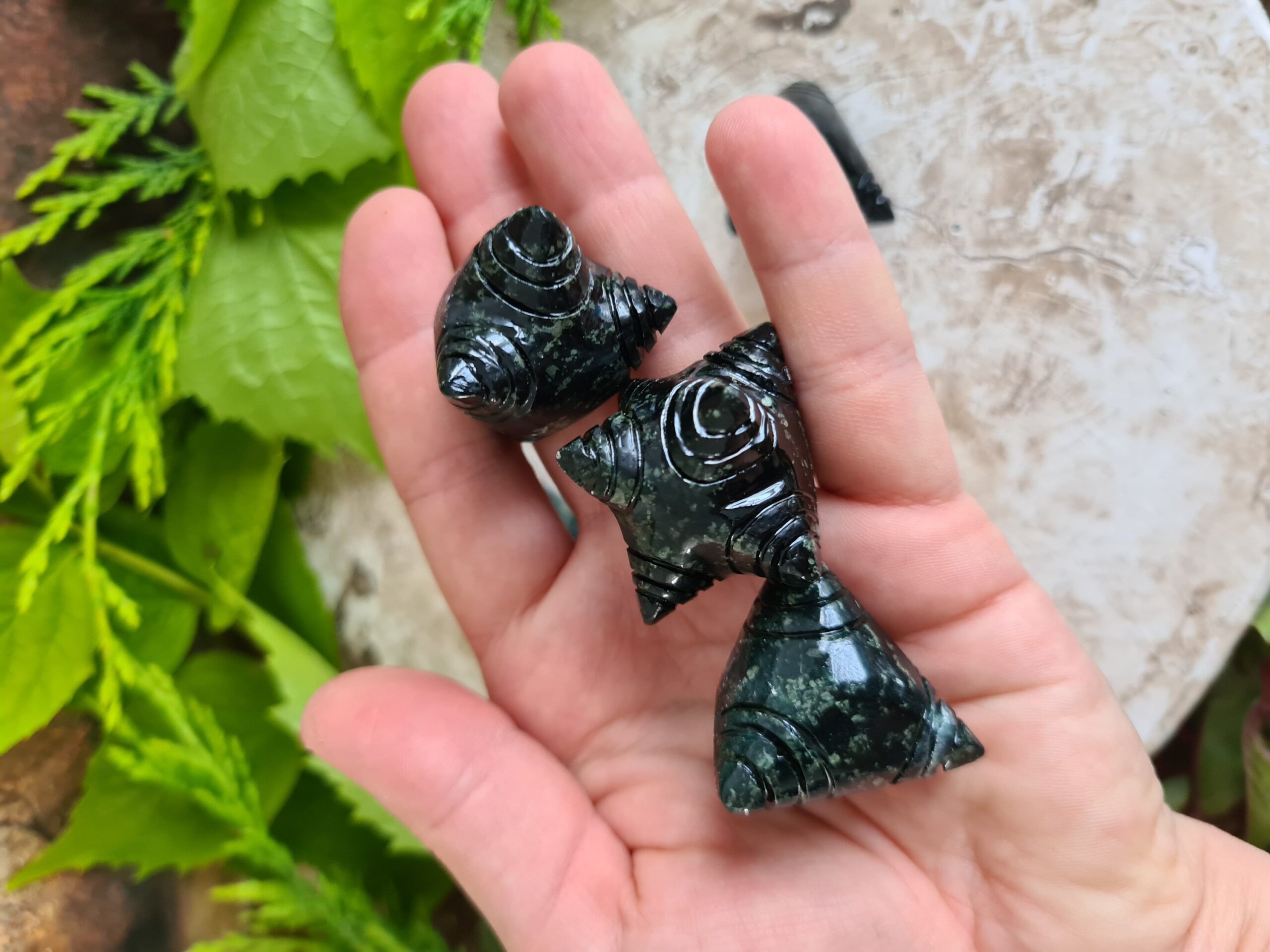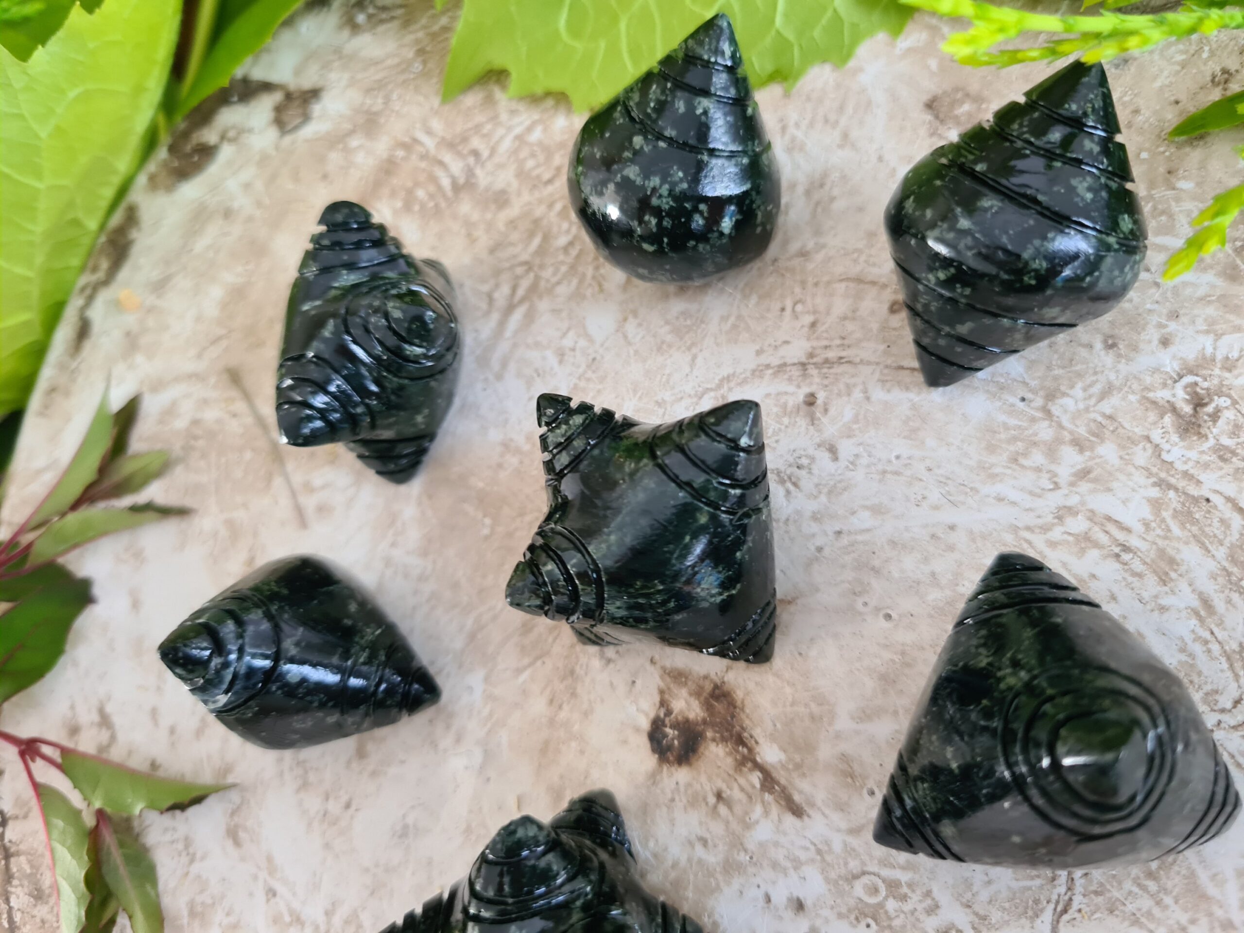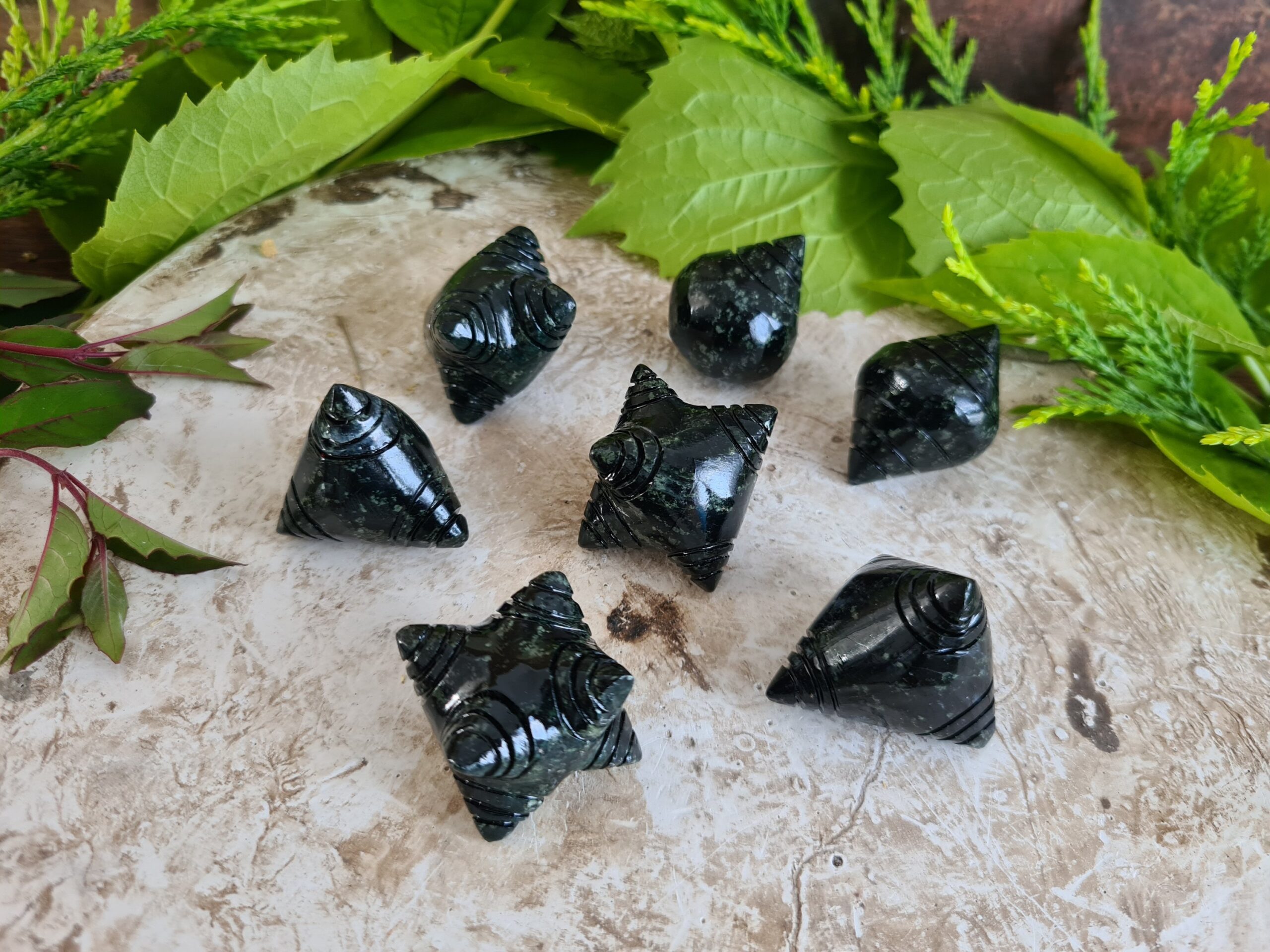 These magical chumpi stones have been carved from dark green Serpentine stone.