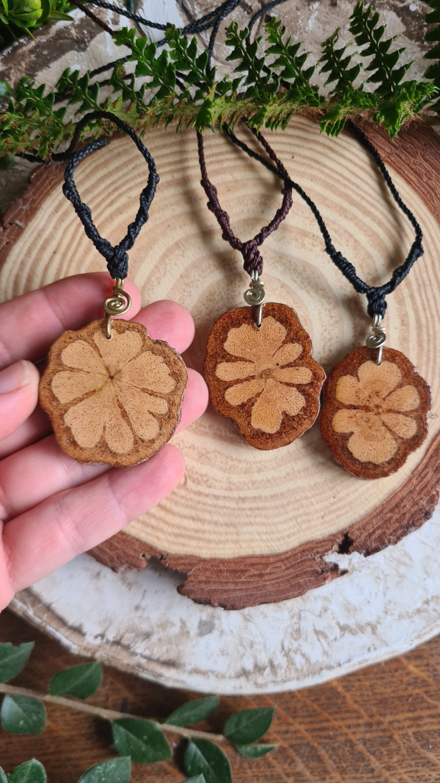 Carry the protective and grounding energy of the rainforest with you. This necklace features a hand-polished slice of the Ayahuasca vine, revealing the stunning “Flower of Life” geometry hidden within its core. Revered by indigenous Amazonian cultures for millennia, this vine is a symbol of deep wisdom, healing, and spiritual connection.