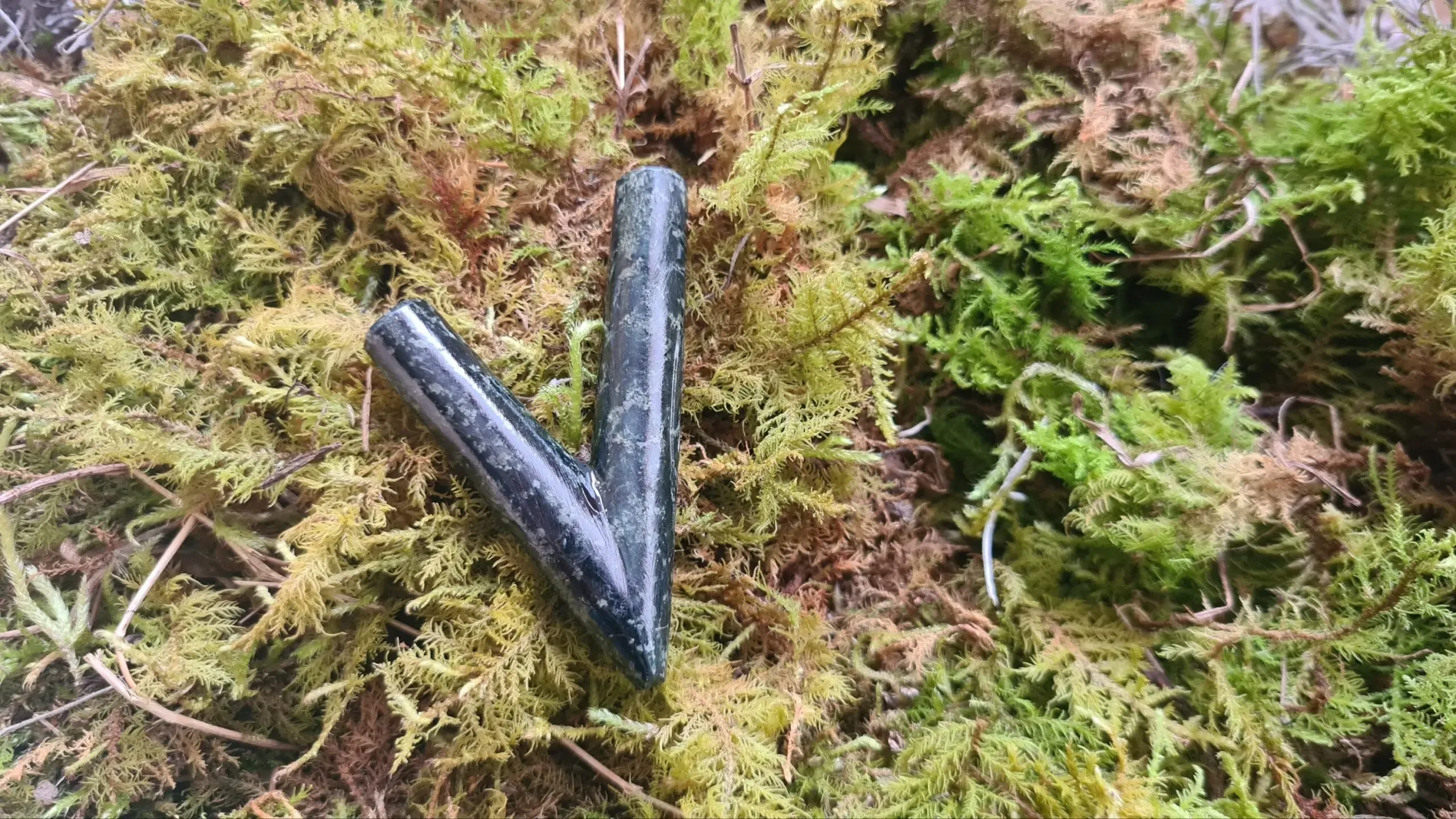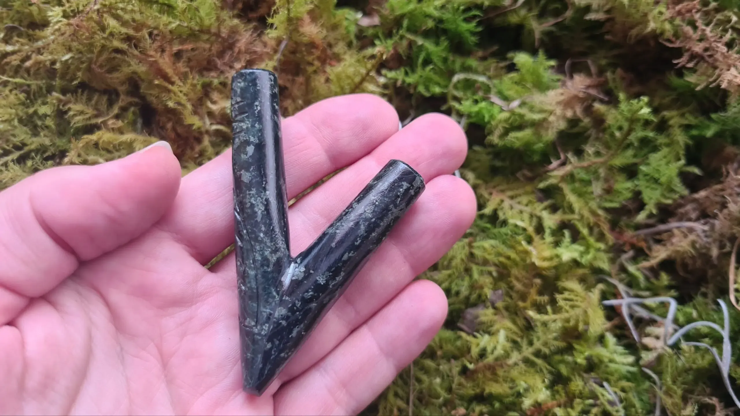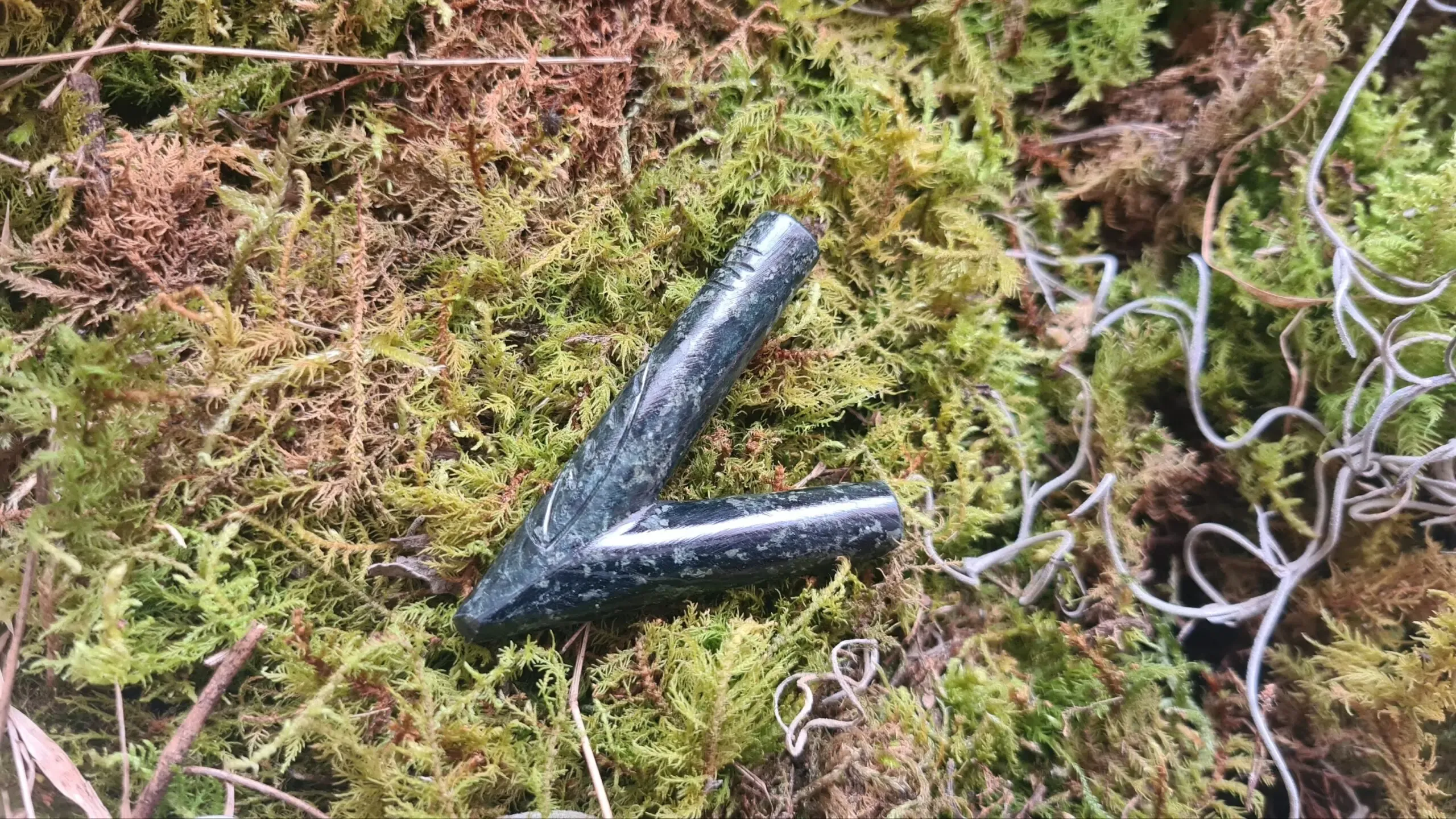 This is a beautiful Kuripe made from dark green Serpentine stone.