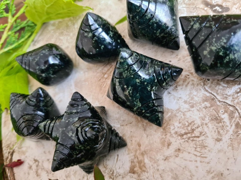 7 Hand-Carved Serpentine Chumpis: Ranging from 1 to 7 points extra large carving size of each.