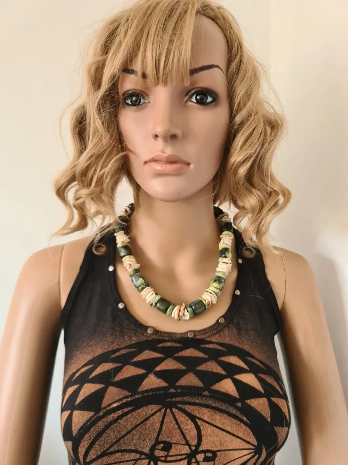 Be the first to review “Large Light green Serpentine stone and shell crystal necklace”
